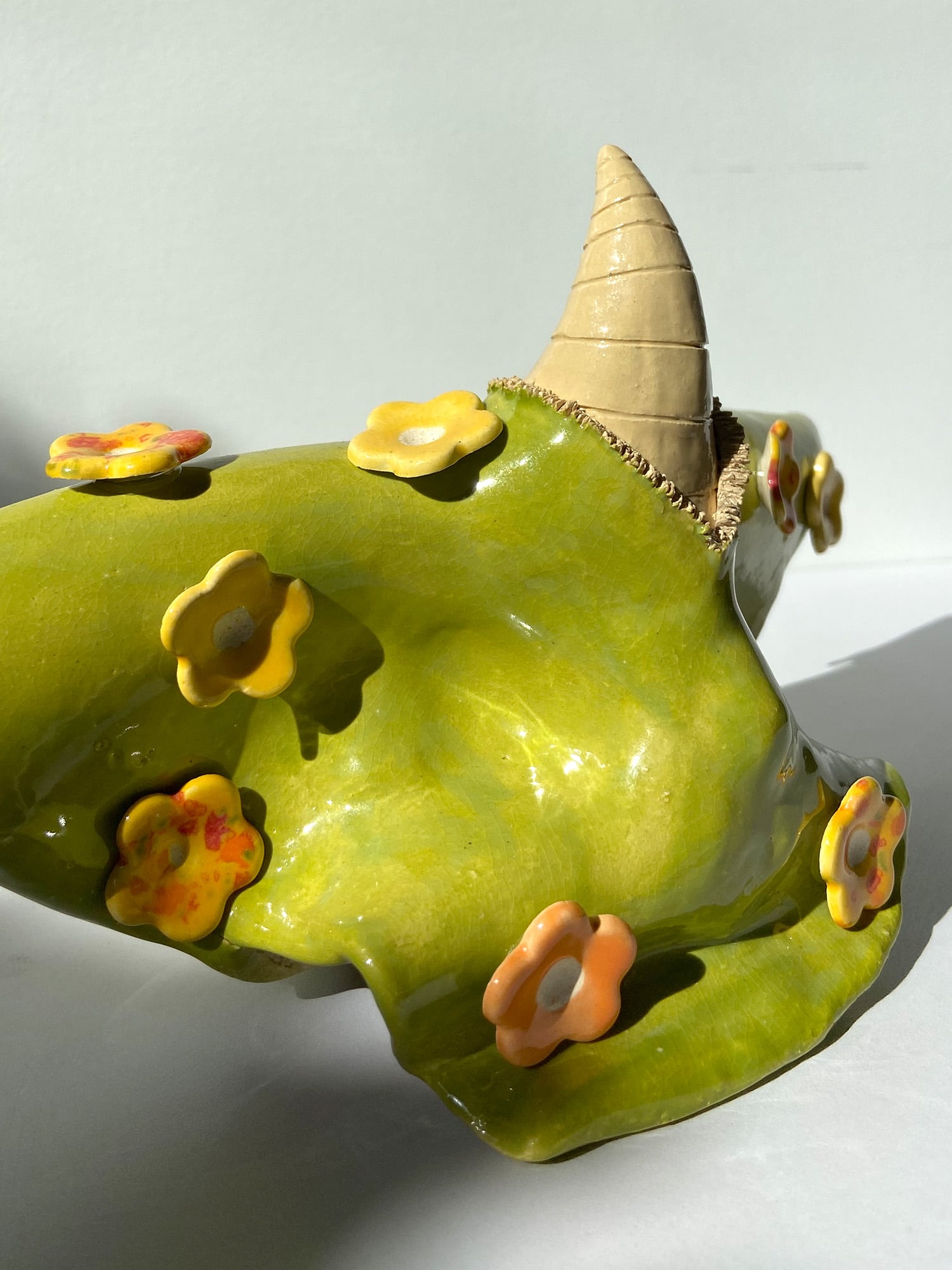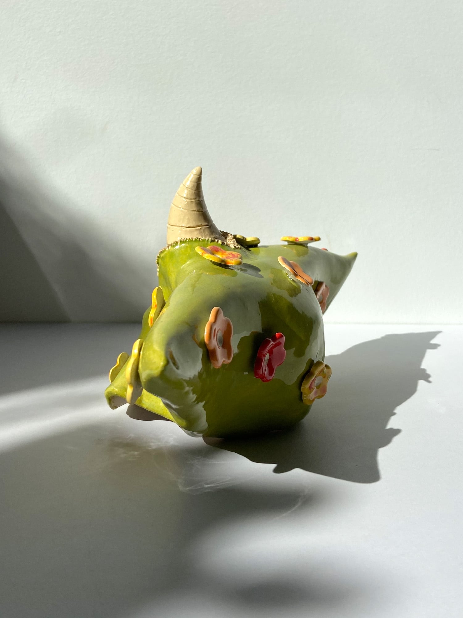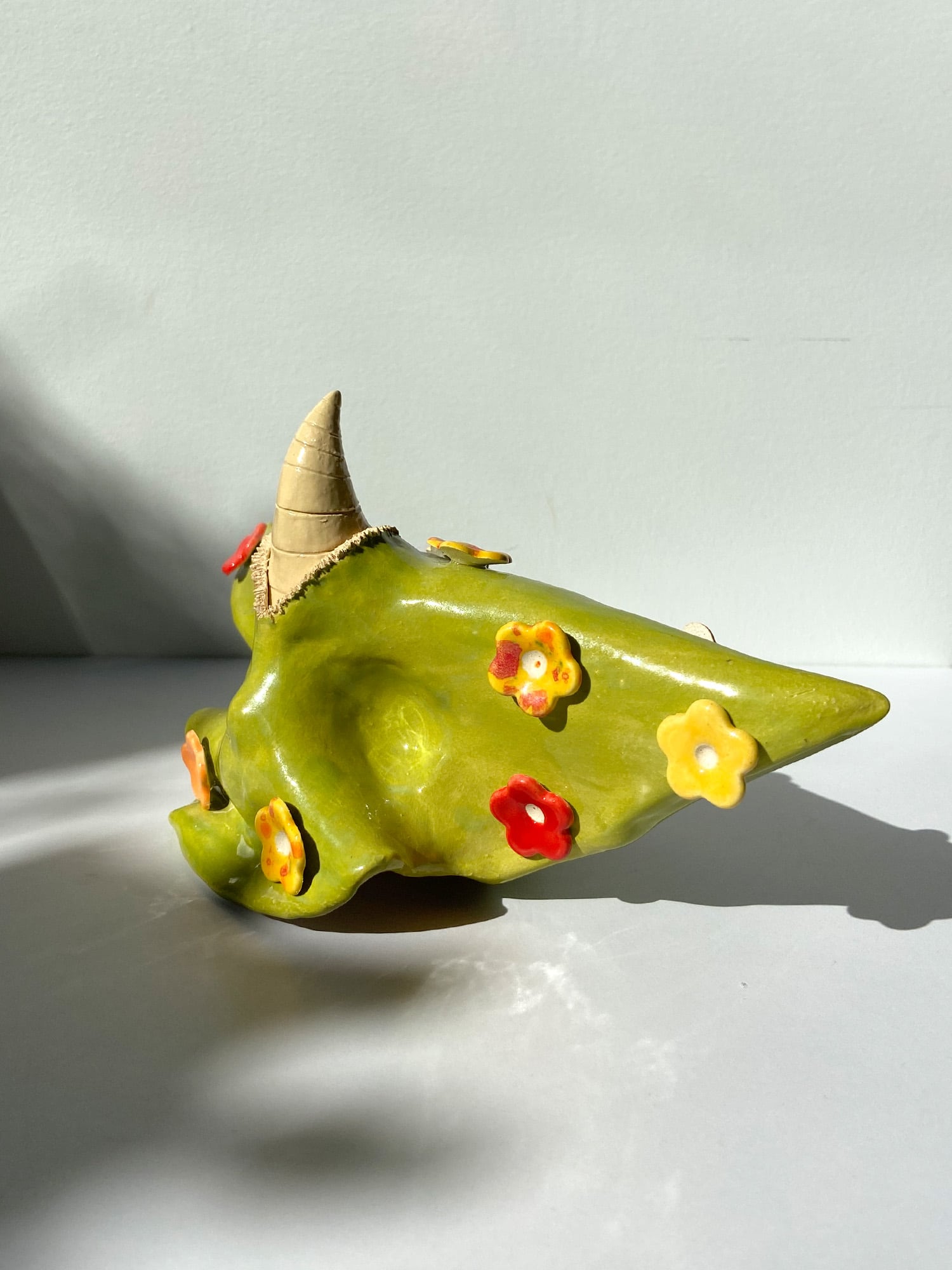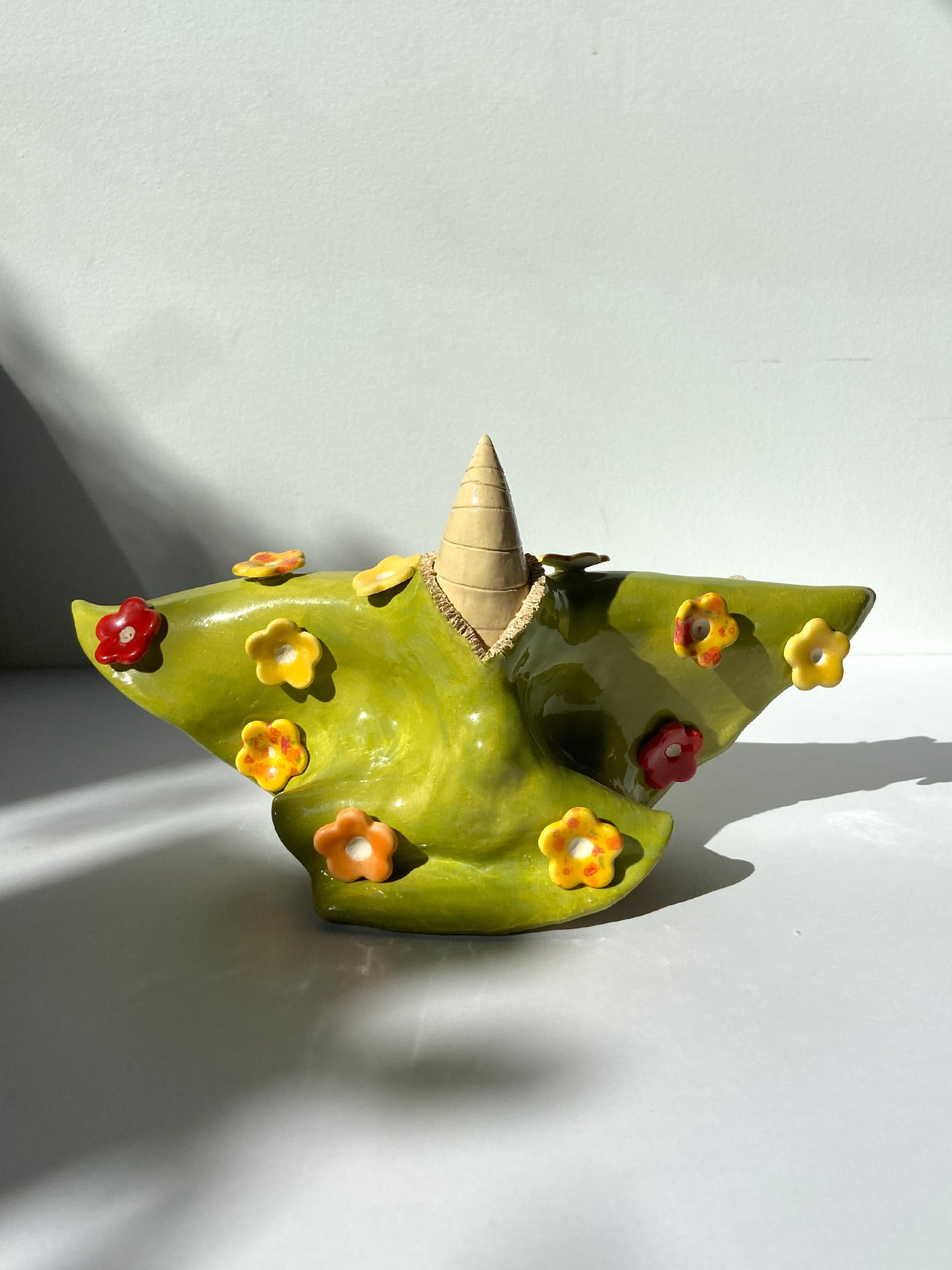 This Yokai is basically a flower garden. Ceramic sculpture covered with plum blossoms.