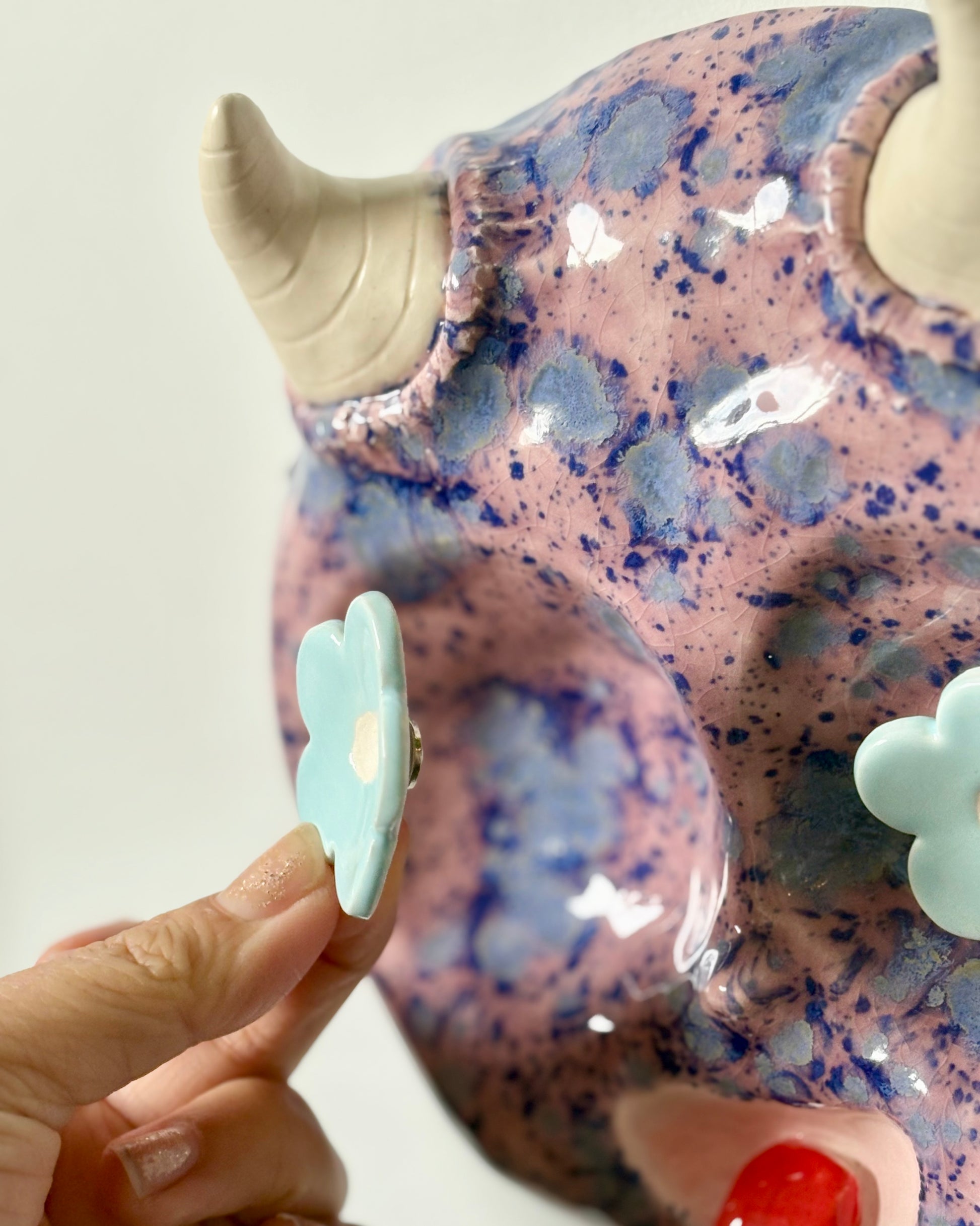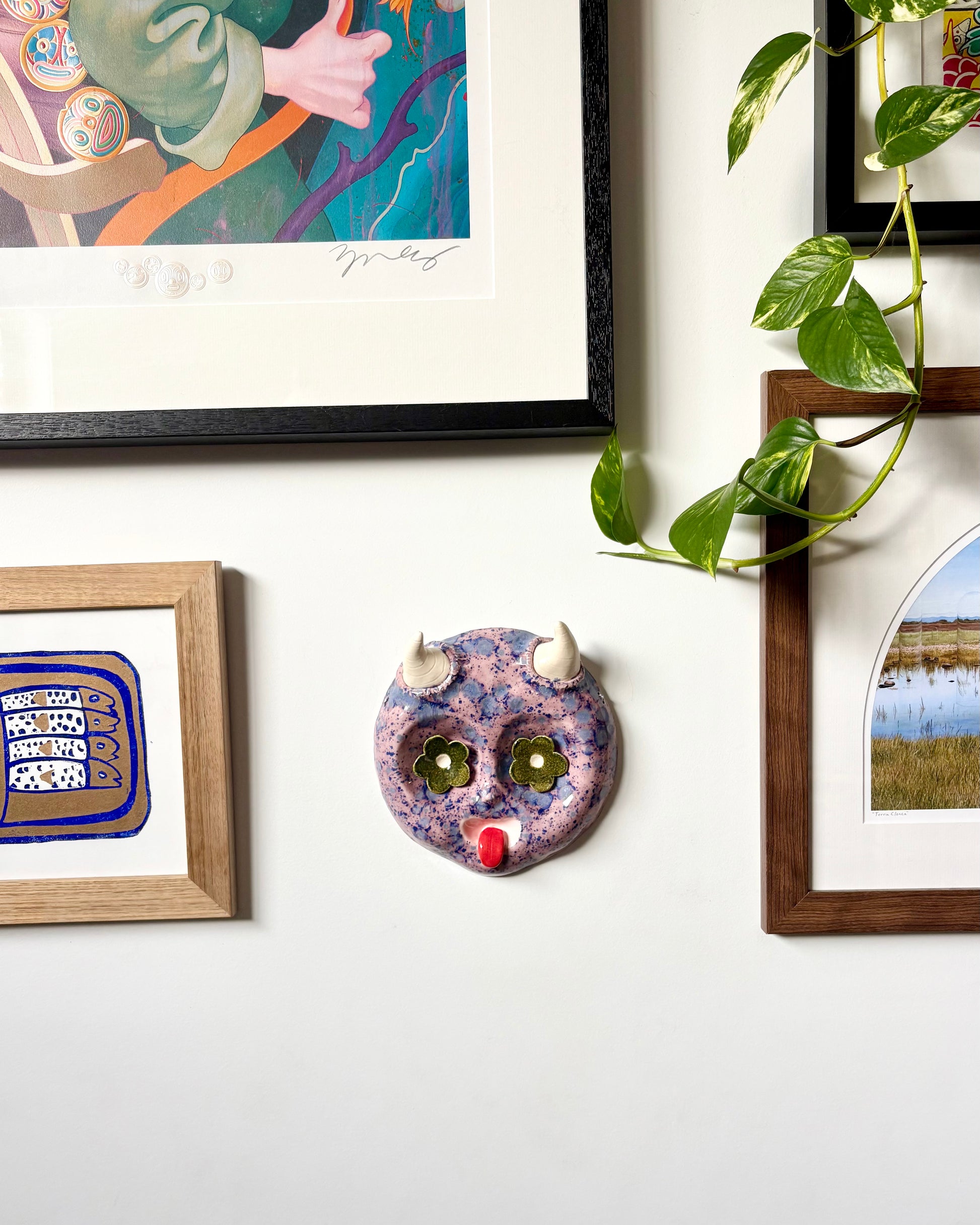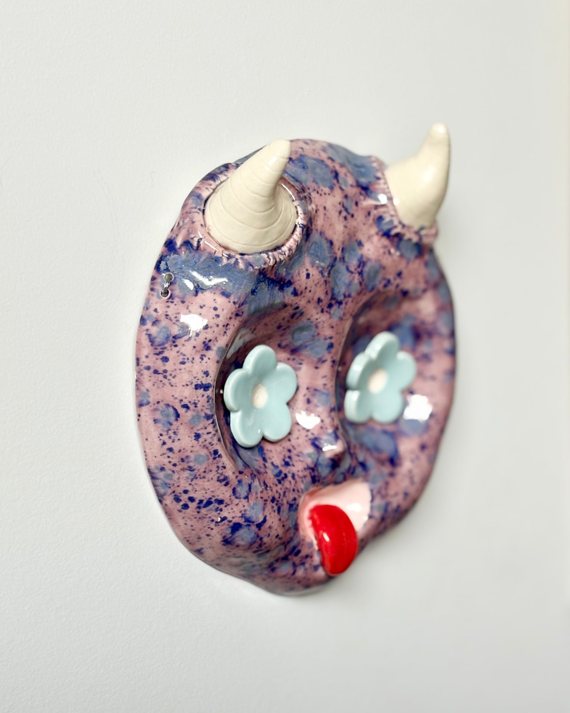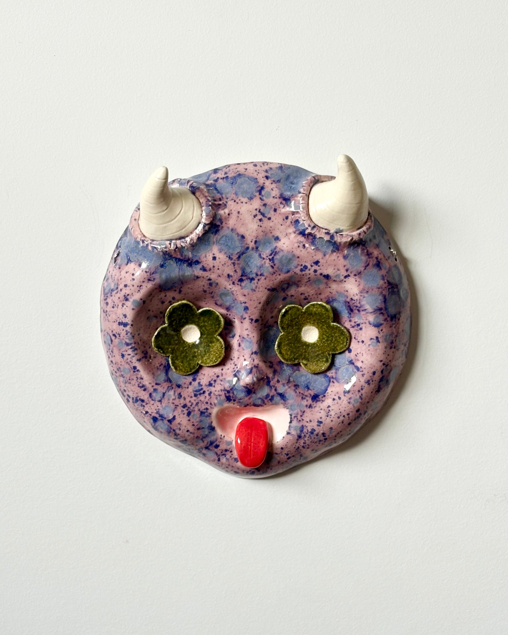 Ceramic wall hanging with magnetic eyes. Comes with two sets of eyes to customise your mood.